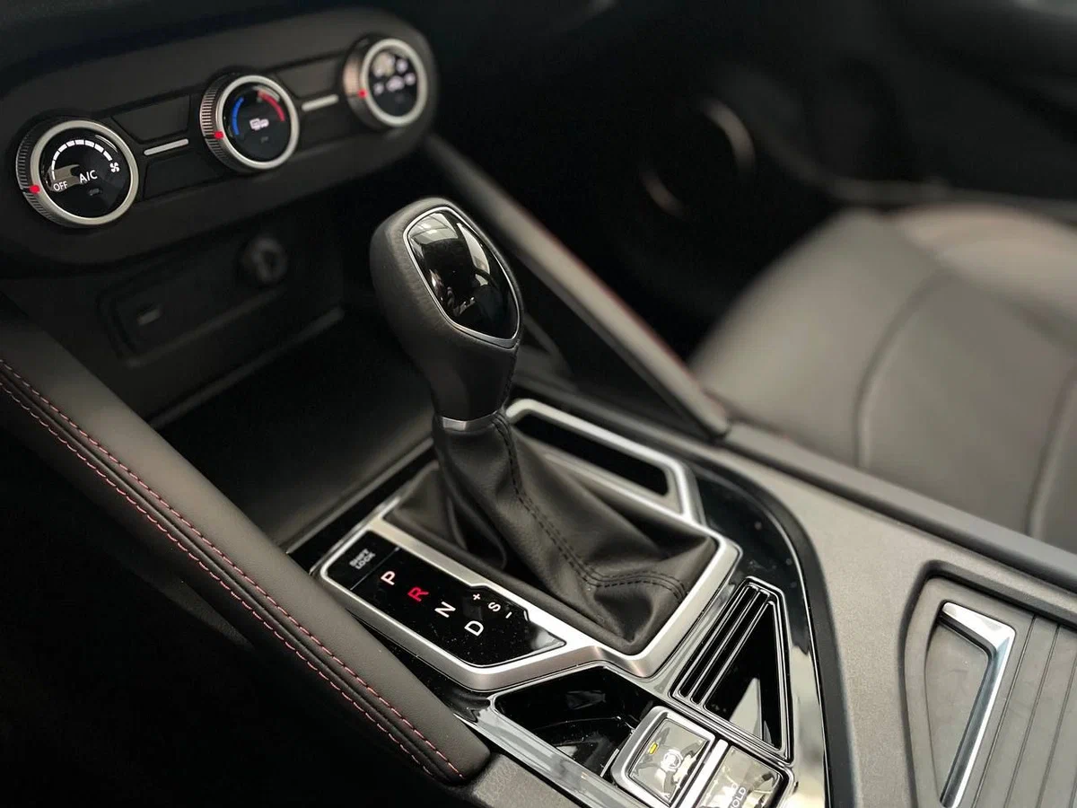 Центральная консоль черного цвета со вставками из эко-кожи с прострочкой |