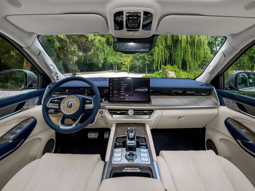 Центральный подлокотник сидений заднего ряда с подстаканниками, отсеком для хранения и сенсорным экраном управления функциями автомобиля |